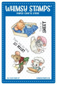 It’s new release day with Whimsy Stamps and it’s full of sweet Spring images. I chose A Very Mice Day stamp set and this adorable mouse having a bubble bath in a cup. Whimsy has several complementing products to complete the bubble theme!