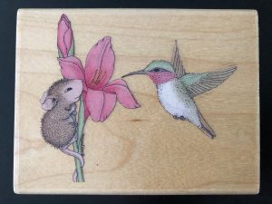 We have a new challenge starting today! HMFMC#434….The theme is Anything Goes with the option of Spring Flowers. I chose another wood block stamp from the archives, Bird Watching with the lovely daylily. We have several groups of daylilies in our yard and will have hummingbirds, but we are several months from seeing either appear.